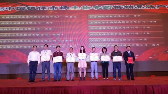 本屆頒獎大會中保集團共榮獲三項獎勵:創(chuàng)制型植物免疫蛋白質生物農藥——阿泰靈(6%寡糖·鏈蛋白)榮獲“2015中國植保市場生物農藥暢銷品牌產品”第一名、“2015中國植保市場最具市場爆發(fā)力品牌產品”第二名;同時,中保集團也榮獲“中國農藥行業(yè)制劑銷售50強”。這三項榮譽的獲得,體現(xiàn)了中國農科院植保所中保集團一年來為生物農藥推廣應用及中國農藥工業(yè)健康發(fā)展所做出的貢獻和取得的成就。